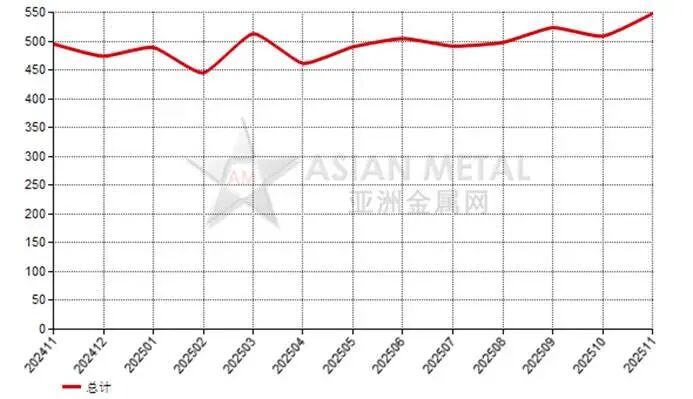 2025年1-11月,中國(guó)累計(jì)出口電熔鎂砂506,435.12公噸,去年同期為468,656.08公噸,同比上漲8.06%。