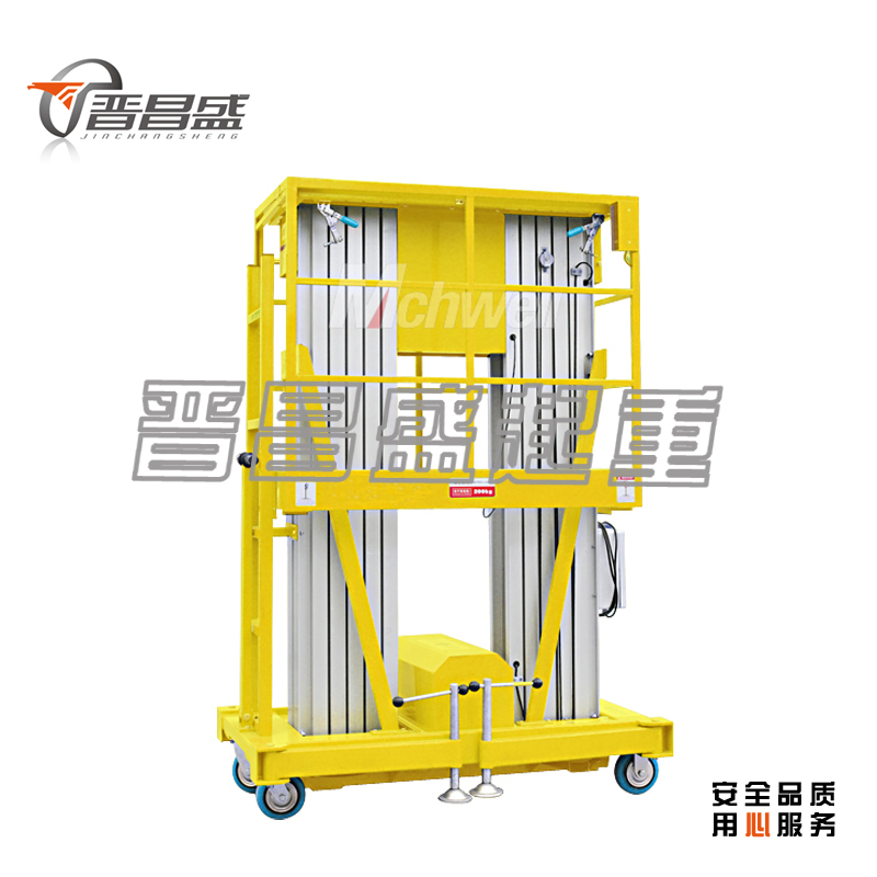 兩組桅柱支撐作業(yè)平臺(tái)同步升降,具有優(yōu)秀的工作穩(wěn)定性;整體升降式護(hù)欄裝置,強(qiáng)度好