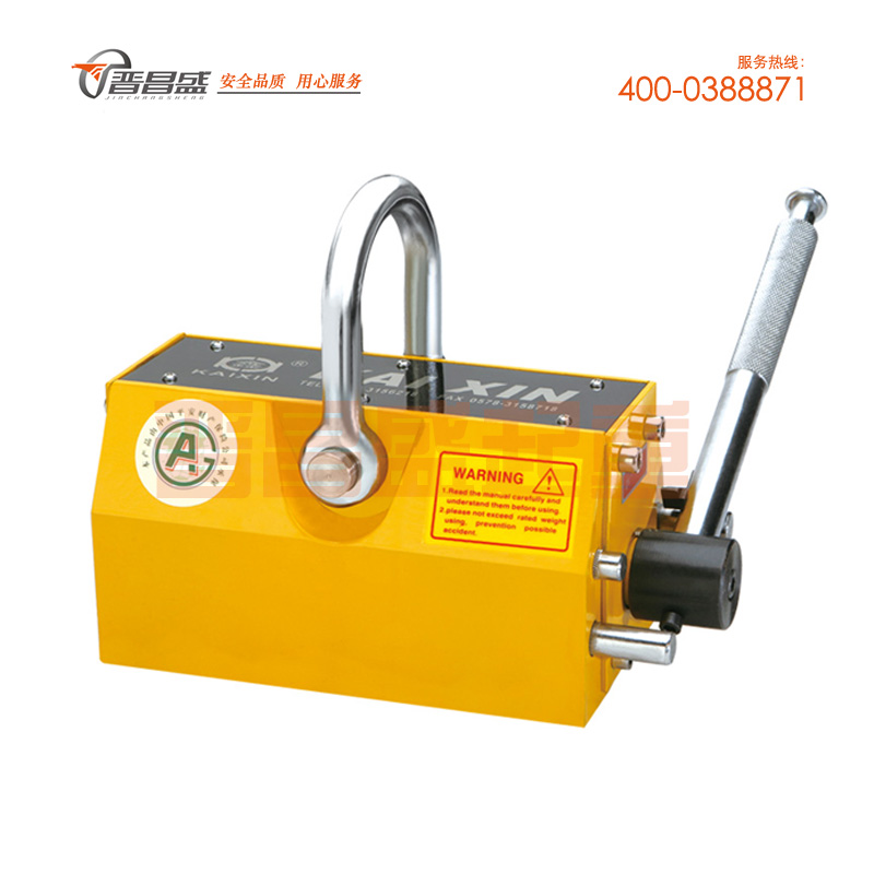 YQ型永磁起重器采用高性能磁性材料、使之體積更小,自重更輕,吸持強力。獨特磁路設(shè)計,剩磁幾乎為零。安全系數(shù)高,最大拉脫力,是額定起重的3.5倍。手柄開關(guān)附有安全鈕,可單手操作,方便安全。起重器底面有“V"型槽設(shè)計,可起吊相對應(yīng)的圓鋼、鋼板。不用電,磁力恒久不衰,使用安全。可在野外作業(yè),廣泛用于鋼材的起吊搬運,平整的機(jī)械零件,及各種模具的安裝及搬運。