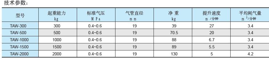 氣動卷揚機參數(shù):